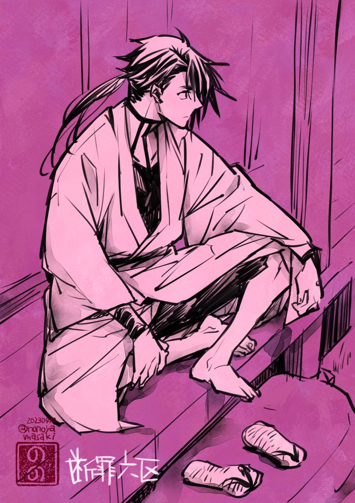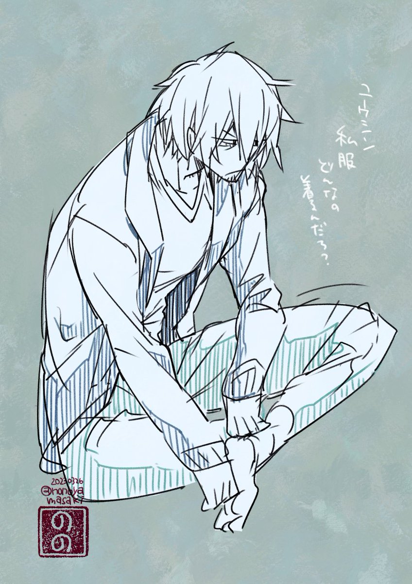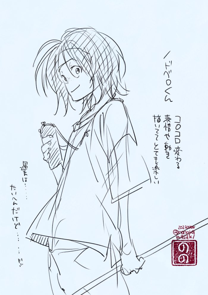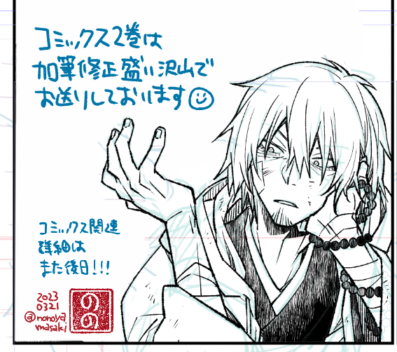 『断罪六区』無料分第12話!本日配信してまっす! 12話でパーカー着てないユウシン久々に出てきてたので、さらに袈裟なしユウシンこんな感じ〜的らくがきを。足は法衣ではなく動きやすさ重視でスポーツ用のアンダーウェアを履いてます👟 twitter.com/nonoyamasaki/s…