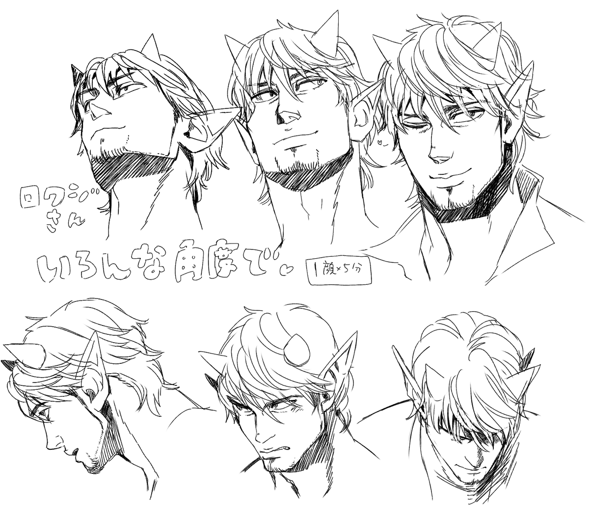 目鼻口の配置を既にしてあるところから顔を描き足していくだけで済むのでめちゃくちゃ速く描ける…。ロクジいっぱい描いてみた。 #ノンリオ