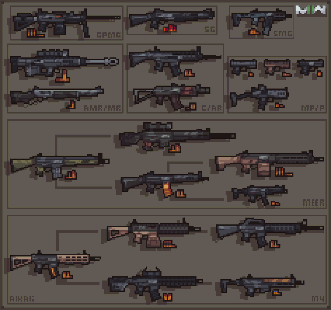 122 1200 Pixelart of every gun in the MWII beta #ModernWarfareII #pixelart #guns 22/10/16 13:12