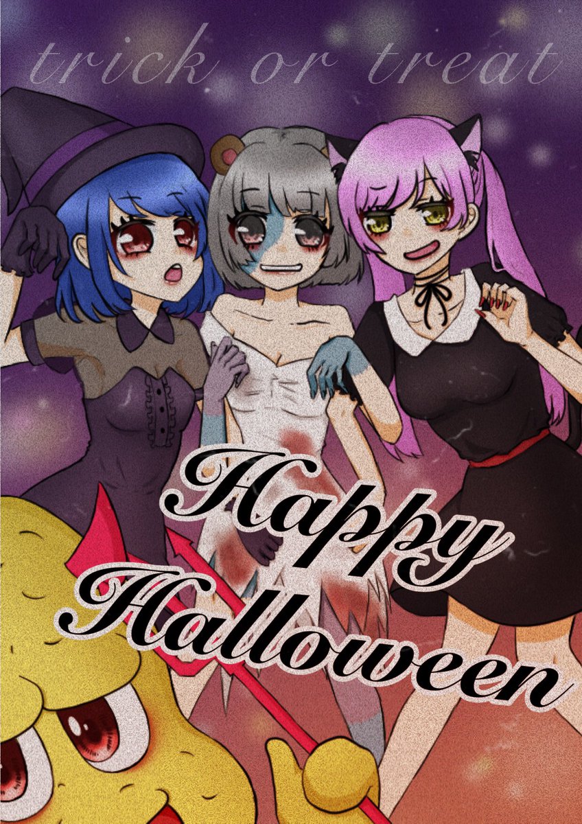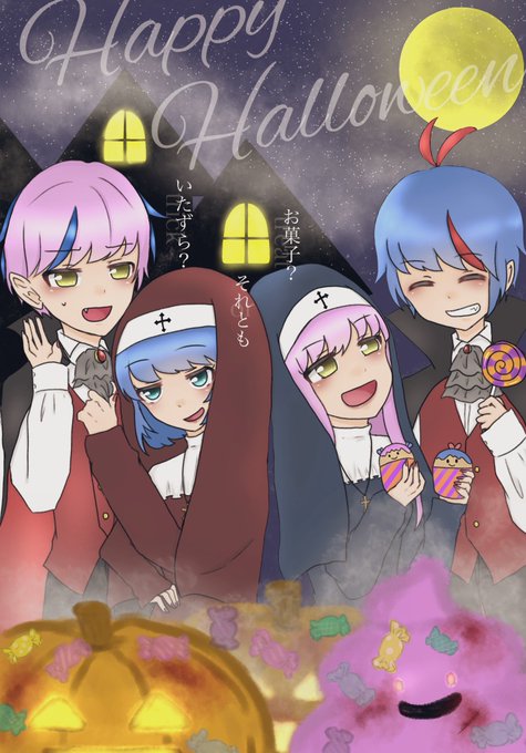 Happy Halloween🎃👻🍭 「お菓子?」それとも「いたずら?」 #おめシス #おめシスはいいぞ #ハロウィン #ハロウィンイラスト