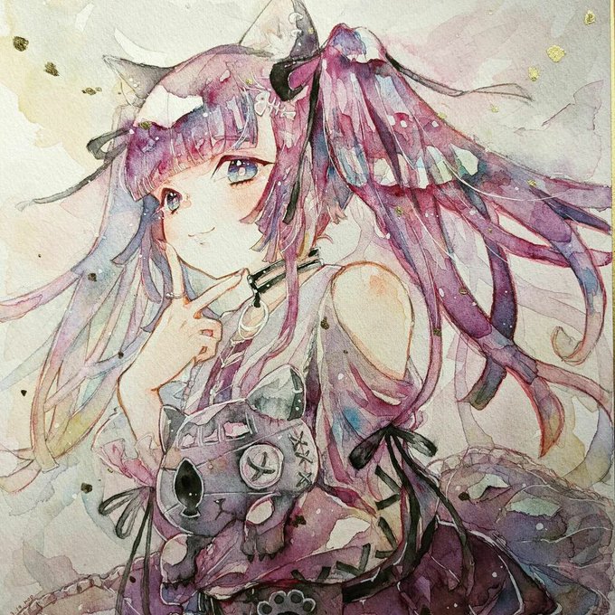 ご依頼で描かせて頂きました〜✨💖 I drew it on request🥰 #アナログイラスト #透明水彩 #創作 #地雷系 #猫耳 #illustration #twitter instagr.am/p/CcNVi6MvJ6h/