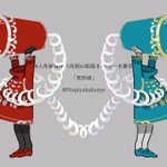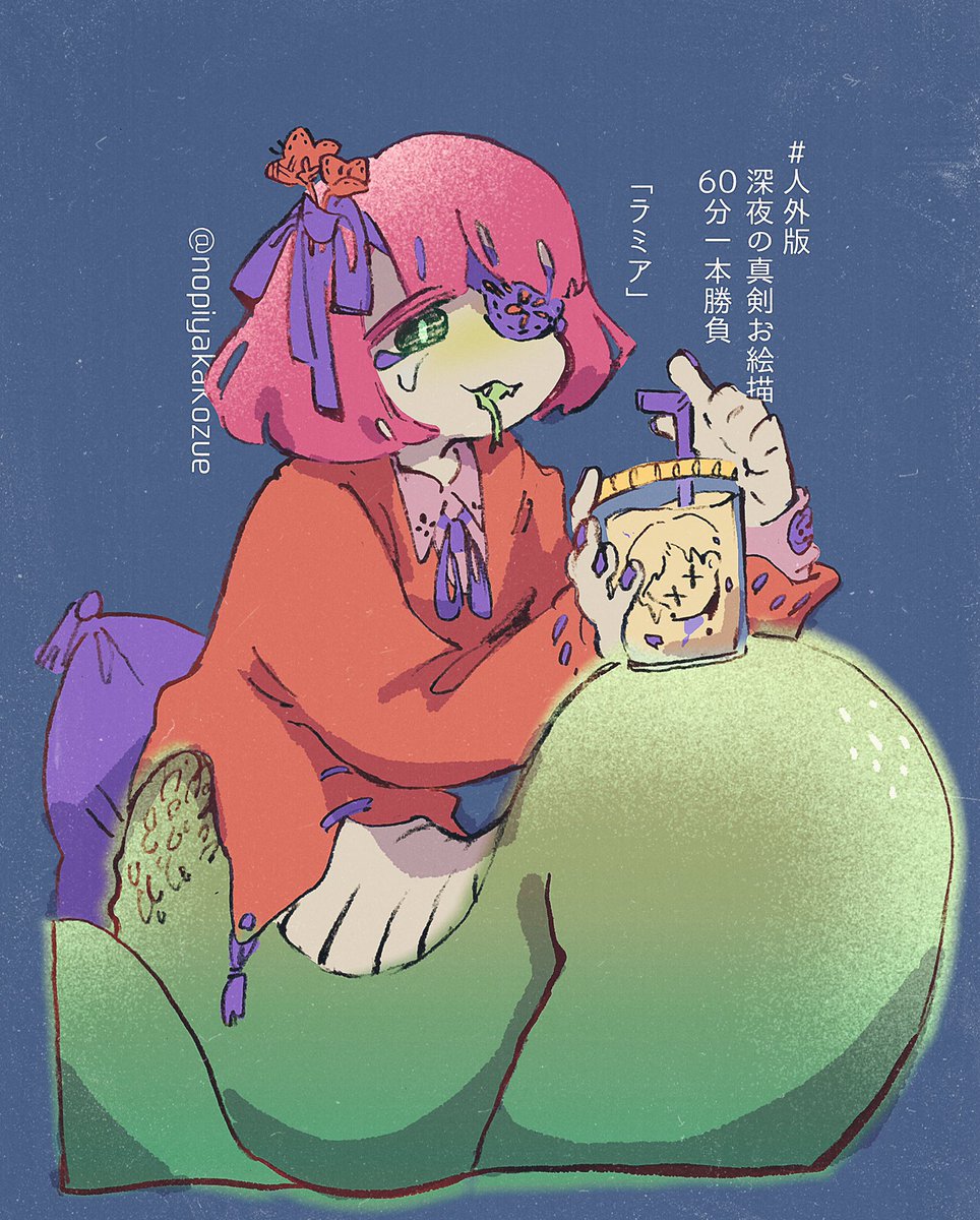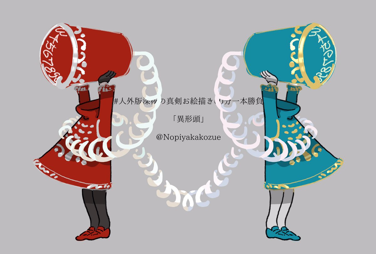 #人外版深夜の真剣お絵描き60分一本勝負 遅刻しちゃった〜お題は「体格差のある人外と人間」を選びました。カルト研究家の姉と、呪いを肩代わりした弟です 6周年て!すごい!おめでとうございます〜!