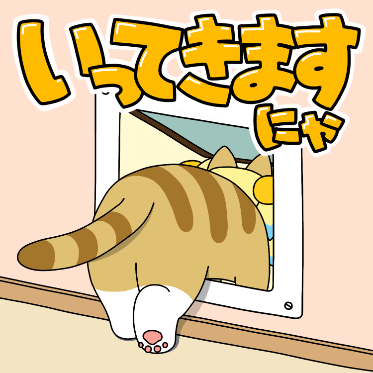 26 59 とりあえずいってきますの文字だけ完成(絵は過去絵) でも「す」がちょっと小さいかな? あとは猫の後ろ姿をなんとか描ければ 23/02/25 14:37
