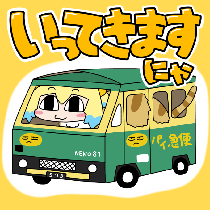 とりあえずいってきますの文字だけ完成(絵は過去絵) でも「す」がちょっと小さいかな? あとは猫の後ろ姿をなんとか描ければ