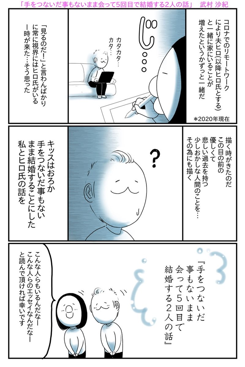 「手をつないだ事もないまま会って5回目で結婚する2人の話」④ 続きは明日! これほんとに描いていいの?と確認する度ニコニコいいよ!とむしろ嬉しそうだった夫ヒロ氏に感謝しています #漫画が読めるハッシュタグ
