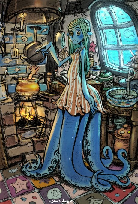 #digitalart #絵 #イラスト #illustration #2D #digitalpainting #CLIPSTUDIOPAINT #wip #ラフ #スキュラ #skylla #kitchen キッチン描くのは楽しい・スキュラさんのキッチンのラフ。 そのうち仕上げる予定。 こう、パース技法をわざと無視して歪めてるのだけど、歪め方って難しい。
