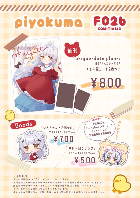 2月19日開催のコミティアでスペースいただきました! 始めてのイラスト本とグッズを制作中です! ブース【F02b】でお待ちしてます🐣 お品書きはギリギリになるかも…。 #コミティア143 #COMITIA143