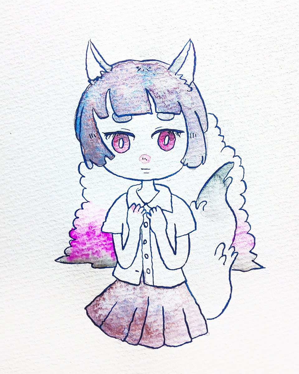 ペン入れが滲んでしまったので、デジタルで供養🥧 #イラスト