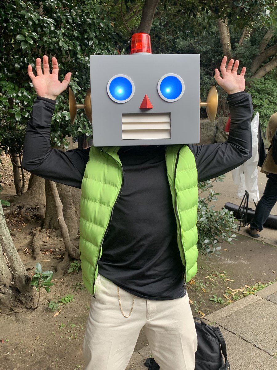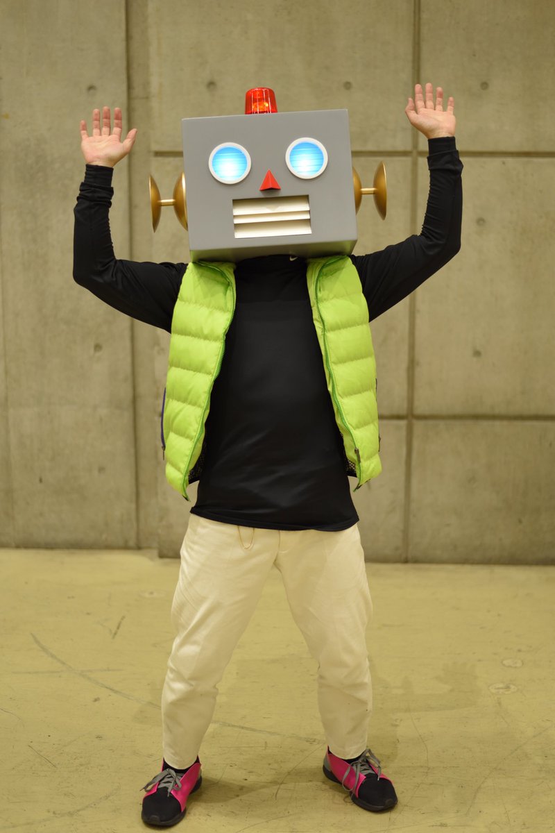 今日のニコニココスプレクション抽選会で当たってんけど、こだわりポイント聞かれてちゃんと答えてなかった。 自分の肩幅からの対比で、頭や各パーツのサイズを決めて造って貰いました! 回転灯と目のライトも試行錯誤が! 頭&靴製作:@atelier_dim 様 📸:@cyanmugiaikatsu 様 #池ハロ2022