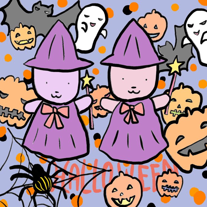 10 103 ツインうさぎの ルーとズー🐇🐇 魔女っ子に仮装✨ かぼちゃいっぱいで 楽しいハロウィンナイト🎃 #お絵描き #イラスト #ハロウィン 21/10/27 06:19