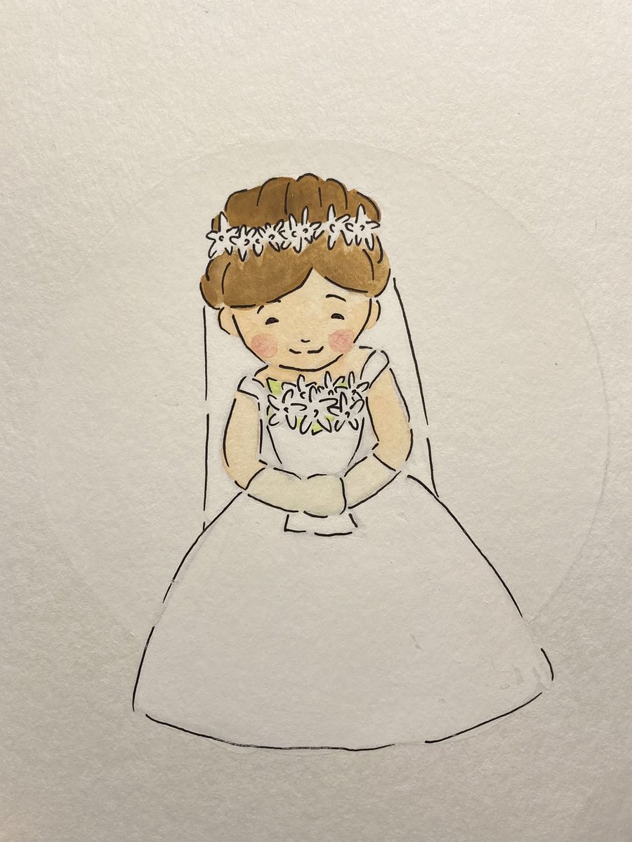 5 76 ウェディングドレス✨ 神聖な白いドレスを着て 新たな気持ちで出発です👰♀️ ⚪️白⚪️ 純粋、清潔、正義、真実 #お絵描き #イラスト #水彩 21/11/01 19:52