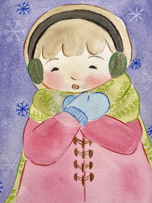 雪と白い息 #お絵描き #イラスト #水彩画 #色鉛筆 #冬イラスト