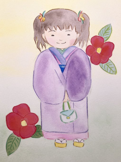 7 100 着物と椿✨ #お絵描き #イラスト #水彩 #色鉛筆 22/01/14 13:39