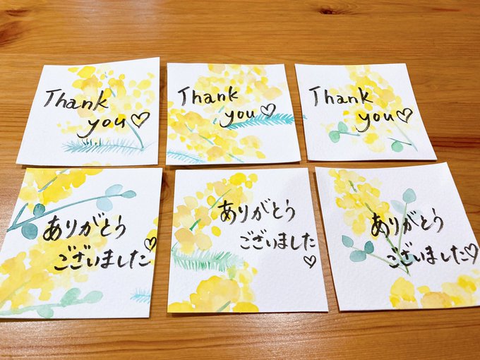 4 38 年度末は別れの時期🥲 感謝を込めて 手作りメッセージカードを制作中🌸 4月は新しい場所で また日々精進してまいります✨ #ミモザ #水彩 22/03/29 18:51