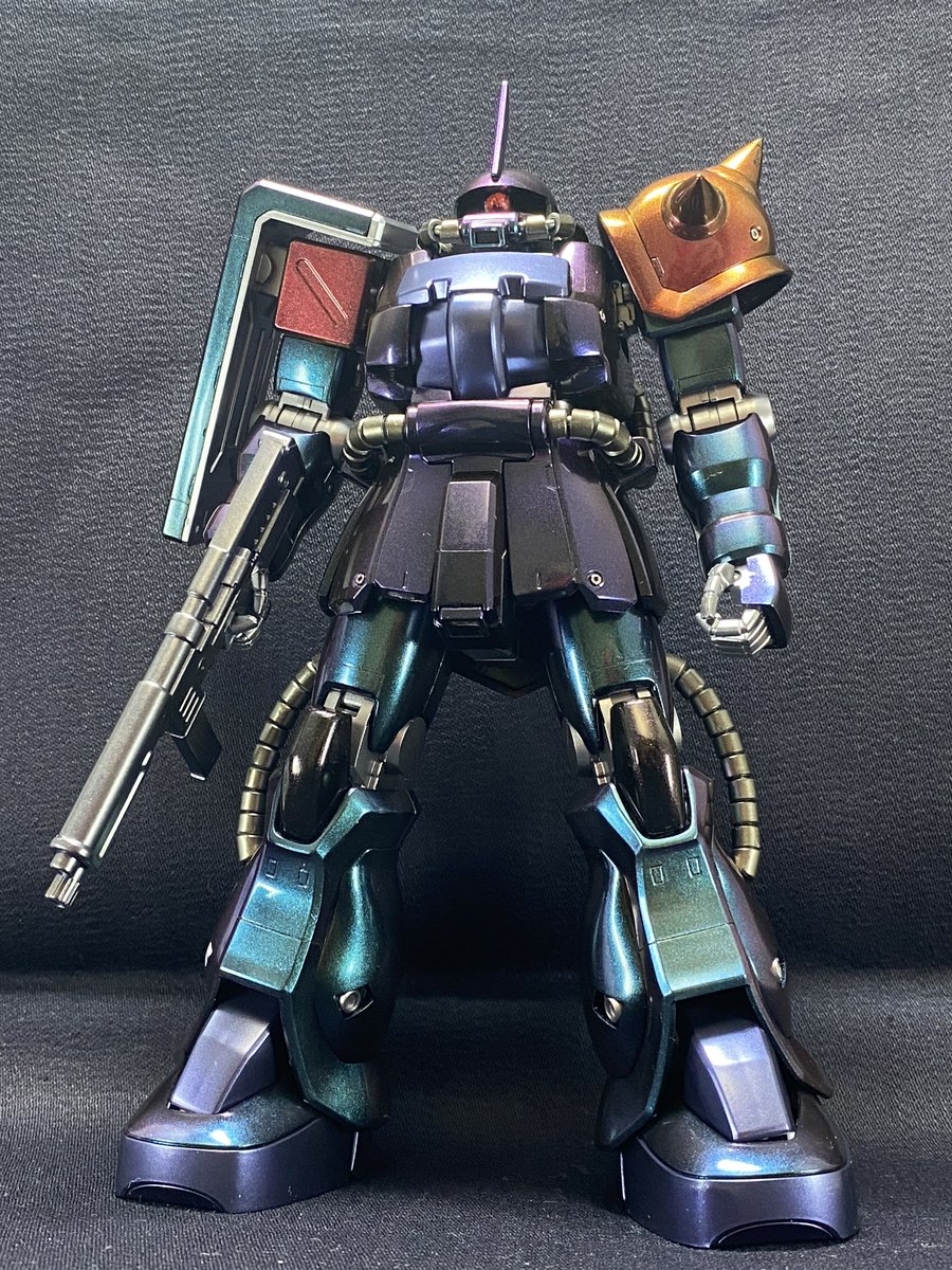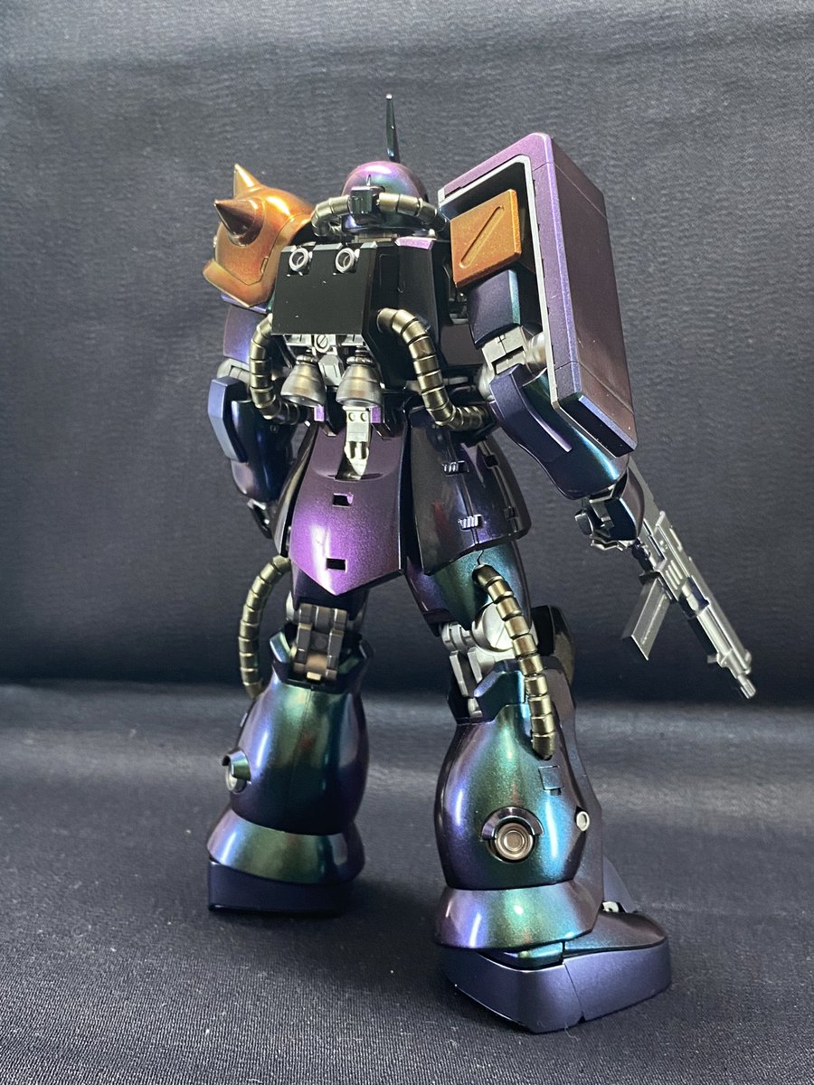 今日の模活。 100均のネイルパウダーで塗装。 肢体、胴体、肩で3種類使ってるけど、偏光が分かりやすいのは肢体だけ。 撮影ブースも今日100均で材料買ってきたもの。 #ガンプラ #ガンプラ好きと繋がりたい #みんなでガンプラ