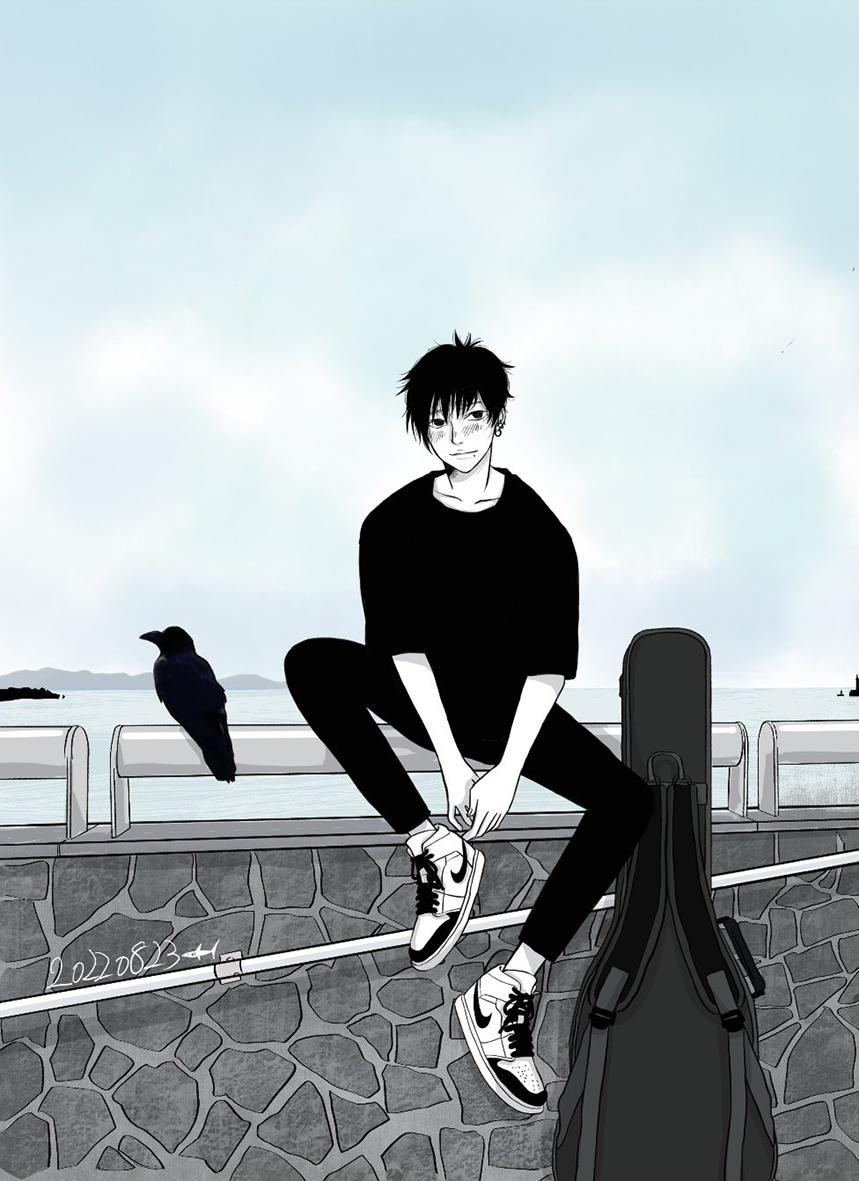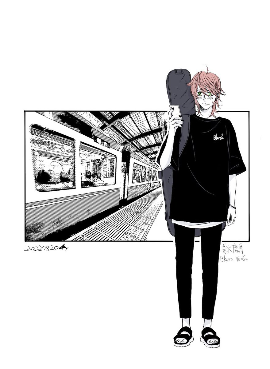 別垢でコソコソ描いてた子達と ▶︎ 0u0x0u0.wixsite.com/norinori #Iイラスト #Procreate #男子 #バンド #江ノ電 #みんなで楽しむTwitter展覧会