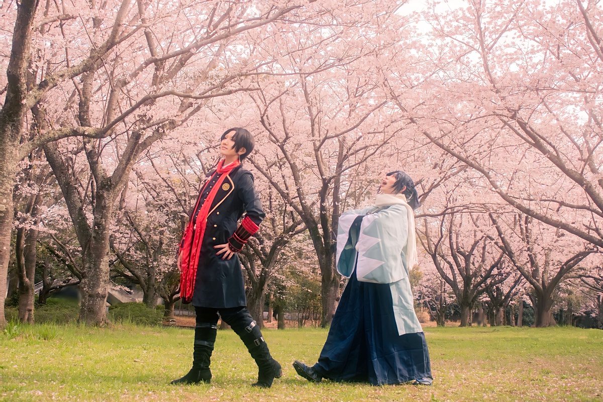 cos/touken 🌸*・ 花より団子、団子より兄弟! *・🌸 #おおつきコスプレ 骨 @2k___augte___ 鯰 @norisiopotete photo 三脚
