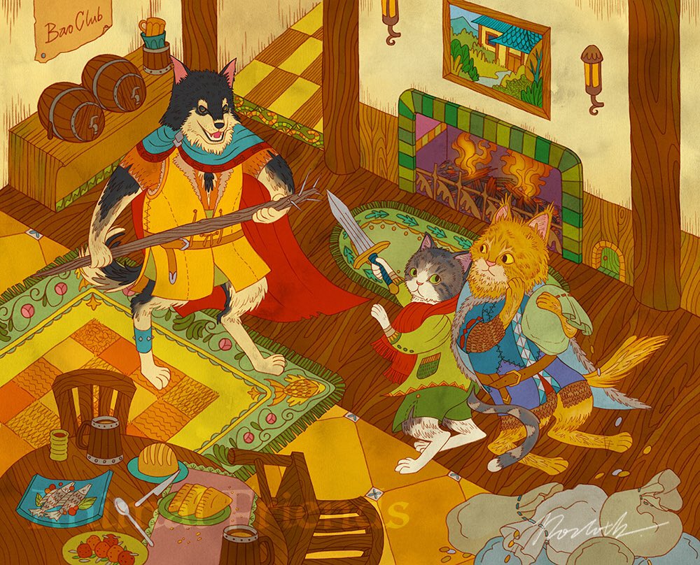 A commission I just finished for a client who wanted her cats and dog in fantasy style. #illustration