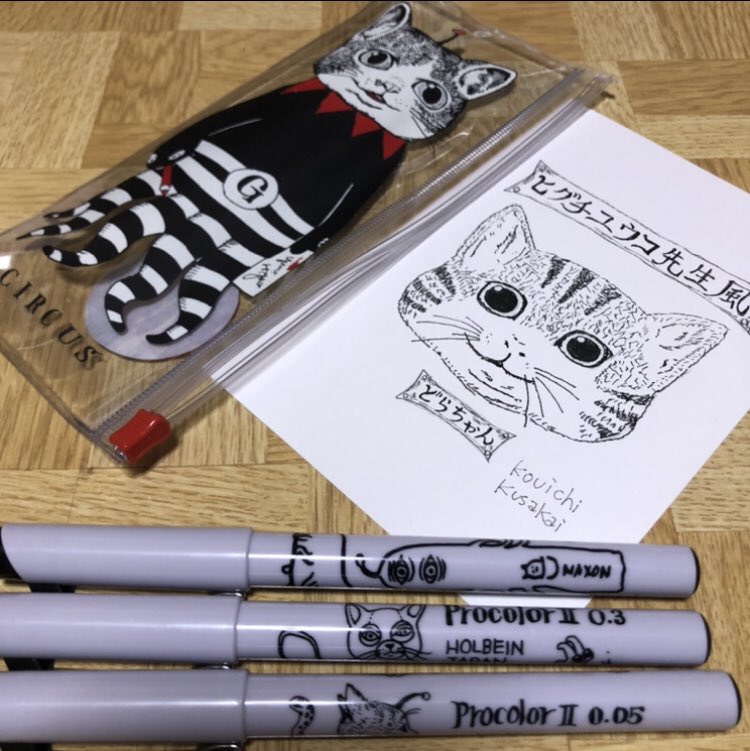 ヒグチユウコ先生描き下ろしのプロカラーペンを頂いたので #ヒグチユウコ 先生風の絵にチャレンジして描いてみましたよ!絵の出来は微妙なのでさておき、ペンは最高です! #ヒグチユウコ展circus が仙台にも来てくれないかなぁ〜! #greatinvaders #グレートインベーダーズ #猫のイラスト #ペン画