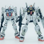 これがやりたかったww アナハイム製ガンダムと、連邦製ガンダムです🤣 RG試作1号機と HGUCガンダムマークIIです✨ #素立ち祭り2022 #ガンプラ好きとつながりたい #ガンプラの画像を貼るとRTされると聞いて