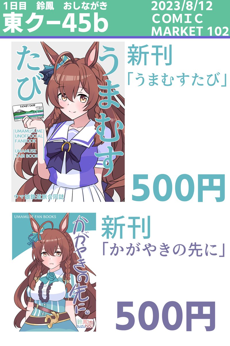 【新刊告知】「かがやきの先に。」 二冊目の新刊はメジロブライトの本です。 本文は28ページ、会場頒布は500円です 2023年8月12日(土) 東3ホール/ク-45b「鈴鳳」で 頒布いたします。宜しくお願い致します melonbooks.co.jp/detail/detail.…