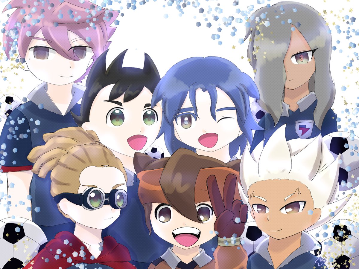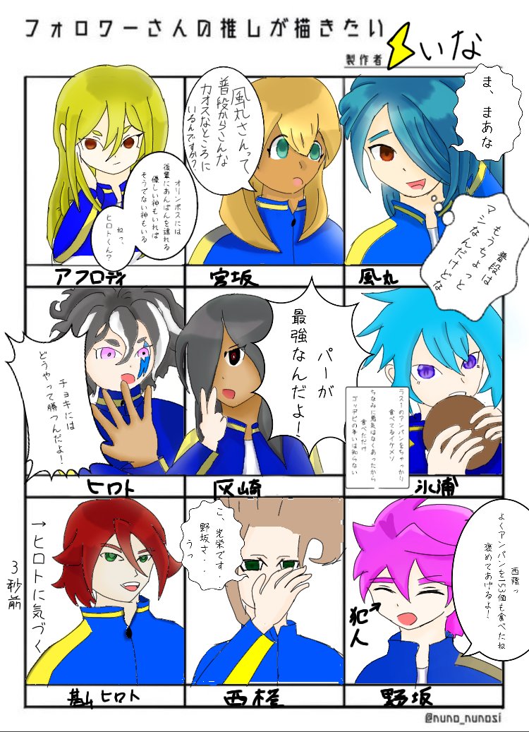 #フォロワーさんの推しが描きたい ↑夏休みの初めの方のタグ.............とは言えない...... わちゃわちゃしてるけど、イナズマジャパンの冷蔵庫に大量にあったアンパンがいつの間にかラス1になってる現場...