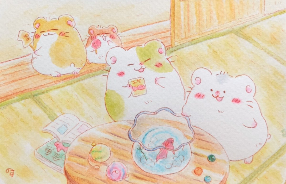 0 24 屋台でゲットした金魚、お世話がんばります…! #ゆるいイラスト #イラスト #アナログイラスト #水彩色鉛筆 #ハムスター #ゆるい #オリジナル #イラストレーション 22/07/13 23:56
