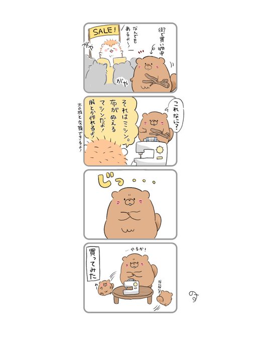 ビーバーくん、買い物中に… 続きます。 #ゆるいイラスト #イラスト #まんが #4コマ #オリジナル #ビーバー #イラストレーション