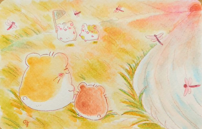 夏の夕暮れ時。 #イラスト #ゆるいイラスト #アナログイラスト #水彩色鉛筆 #ハムスター #イラストレーション