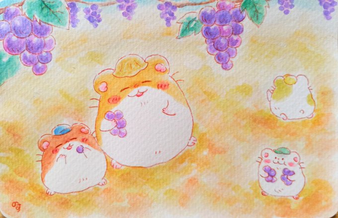 0 24 ほっぺいっぱいに秋の味覚をほおばるぶどう狩り #ゆるいイラスト #イラスト #アナログイラスト #水彩色鉛筆 #ハムスター #ぶどう狩り #イラストレーション 22/09/12 21:22