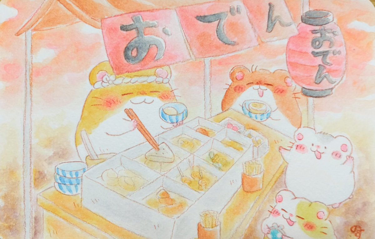3 24 おでんが恋しい季節になりました🍢 #ゆるいイラスト #イラスト #アナログイラスト #水彩色鉛筆 #ハムスター #おでん #イラストレーション 22/11/16 23:51
