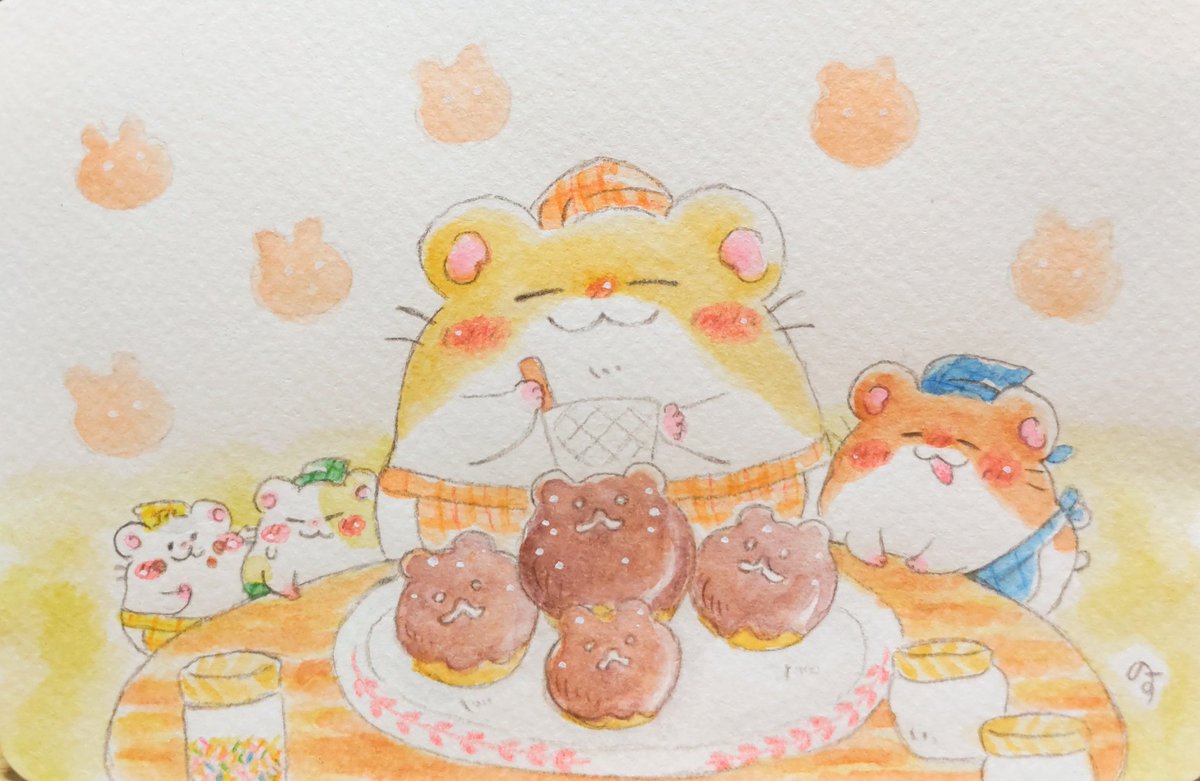 1 7 愛を込めてお菓子作り…🍫 #ゆるいイラスト #イラスト #アナログイラスト #ハムスター #水彩色鉛筆 #イラストレーション #バレンタイン 23/02/10 21:42