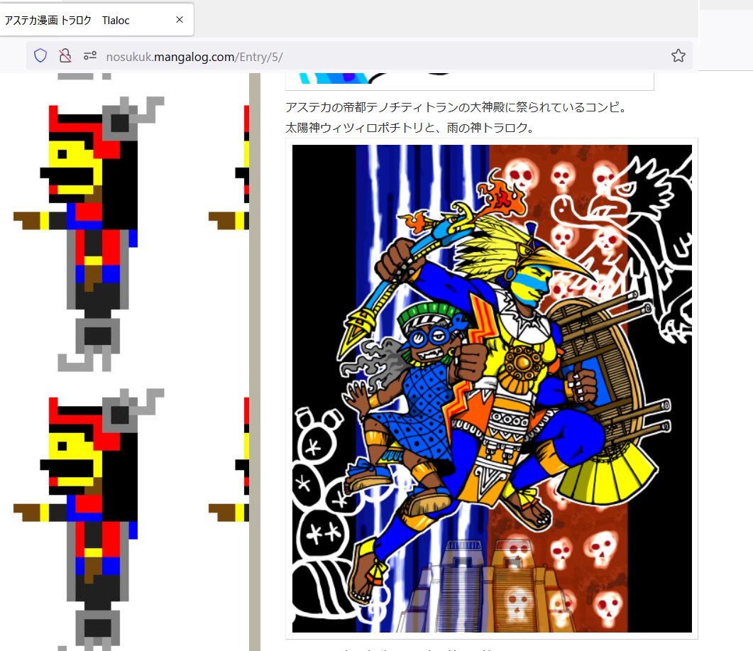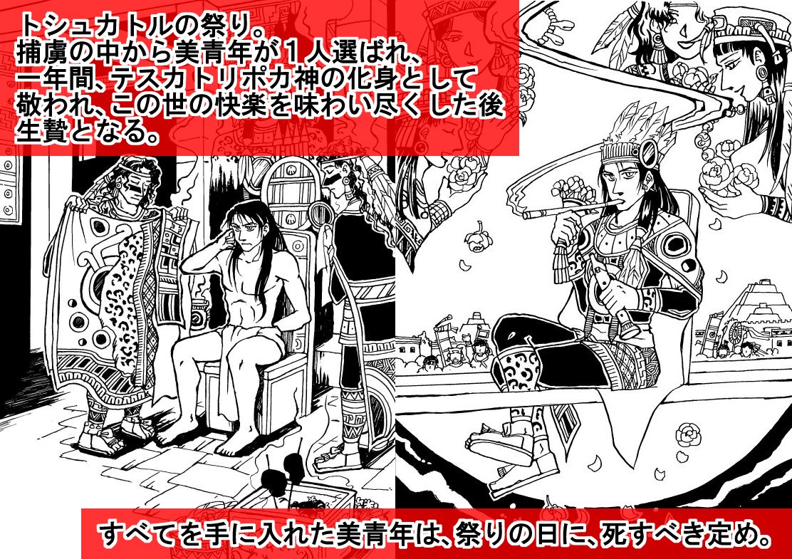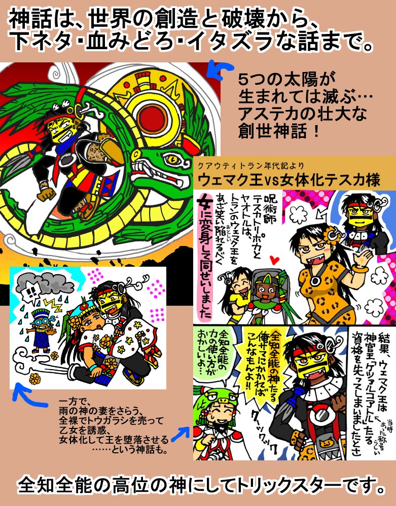 【アステカ漫画】 15世紀ごろ、メキシコに栄えたアステカ文明。 神話や歴史を、漫画とイラストで紹介するサイトです。 🦅アステカが舞台の創作漫画(テスカトリポカ神漫画など) 🐍アステカ神話&神様紹介 🌵アステカの歴史紹介(歴代の王など) 📔オススメ本の紹介 nosukuk.mangalog.com