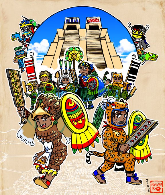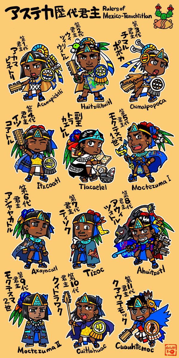 アステカ絵。過去の作品。 アステカの歴代君主(2015年)。縦長の絵です。 👑🗣️ deviantart.com/nosuku-k/art/R… twitter.com/nosukuk2/statu…