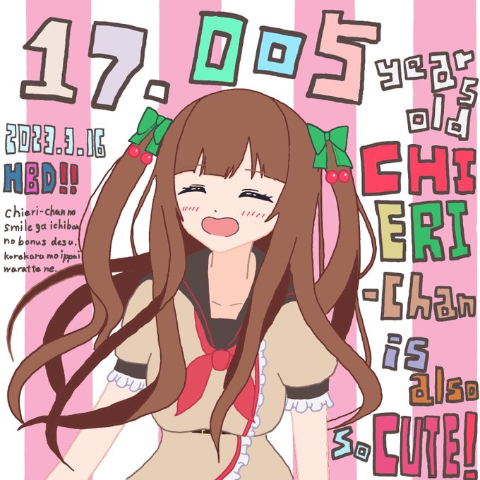 ちえりちゃんはぴば!!!!! 今年もちえりちゃんのお誕生日をお祝いできて嬉しいです……! 歌ってみたも誕生日配信もめちゃめちゃ楽しみにしてます! #花京院ちえり #ちえりちゃんお誕生日会2023 #ちぇり絵