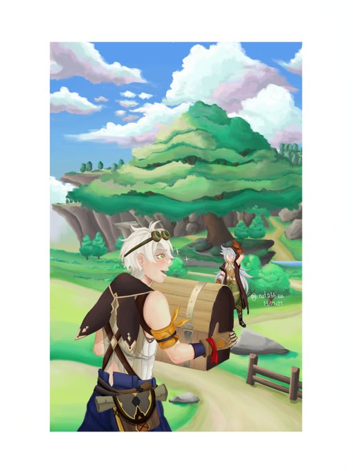 4 9 Landscape practice with 🐺🐰💕💕 #Rannett #Razett #RazorXBennett #Razor #Bennett #GenshinImapct #genshinimpactfanart 21/05/14 16:50