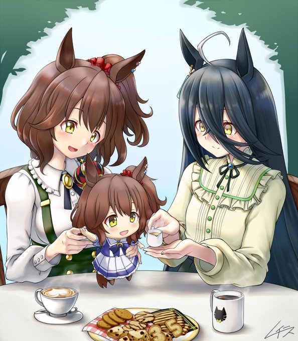 「マーチャン人形さんにも一杯どうぞ…」 「これはこれは。とってもべりーさんくすです」 #ウマ娘 #アストンマーチャン生誕祭2023 #マンハッタンカフェ生誕祭2023