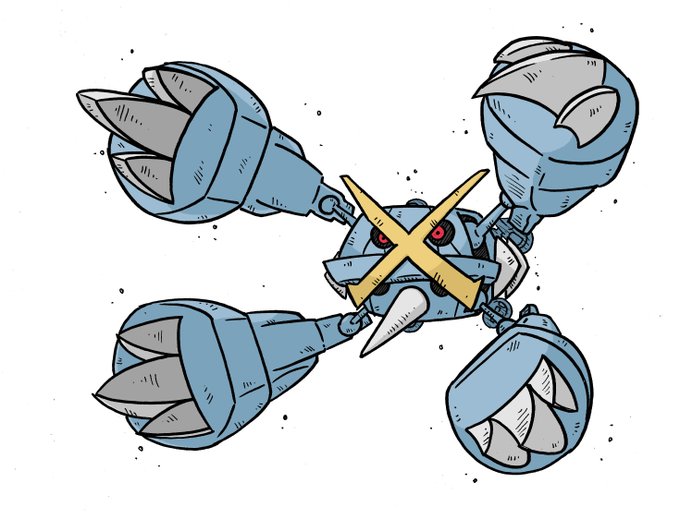 Today's (actually today's) Pokémon is Mega Iron Giant. In difficult battles, it will dig it's claws into it's opponent and explode. #Inktober #PokemonOfTheDay #MegaEvolution #MegaMetagross