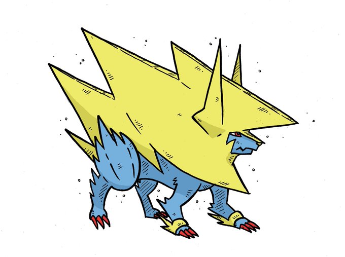 Today's Pokémon is Mega Thunder Dog. It's body is filled with so much electricity that it finds it difficult to control. #Inktober #PokemonOfTheDay #MegaEvolution #MegaManectric
