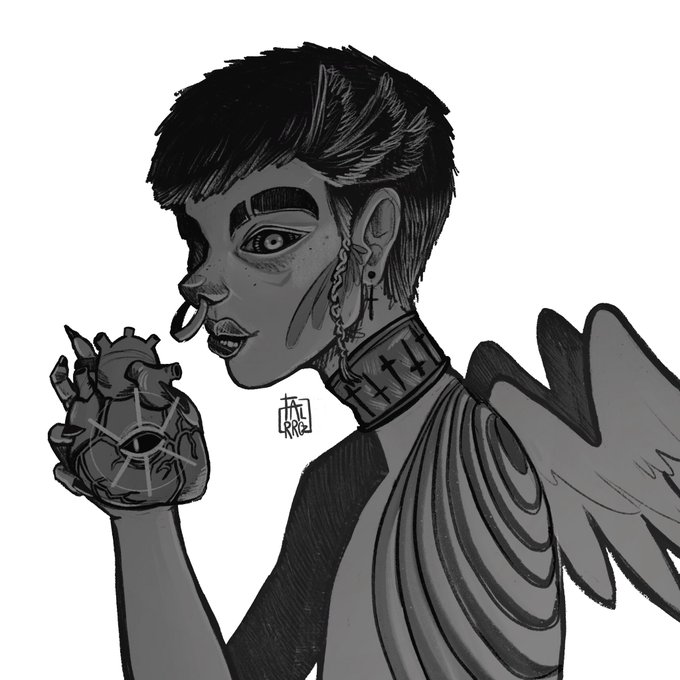 INKTOBER DAY1 •Dark Angel• New year, new challenge! #inktober is here ma people!!! Are you excited??? I’ll try my best to finish it this year🎧 #Inktober #inktober2019 #inktoberday1 #inktober2019day1 #ink #doodle #lineart #angel #drawing
