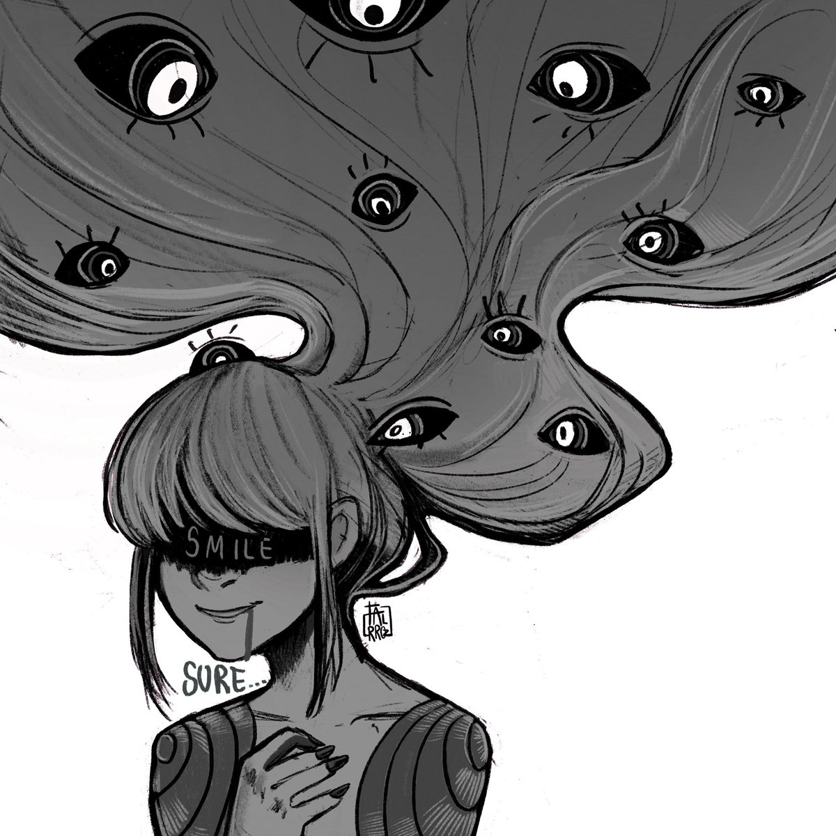 INKTOBER DAY6 •anxiety• #inktober #inktober2019 #inktoberday6 #inktober3019day6 Yall I’m feeling kinda stressed these days and not only bc of inktober! I’m starting university tomorrow and I’m so nervous, idid this to express a bit myself also i’m very proud of those hands lol