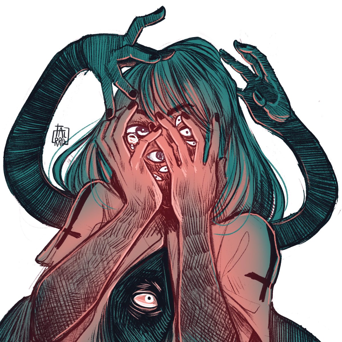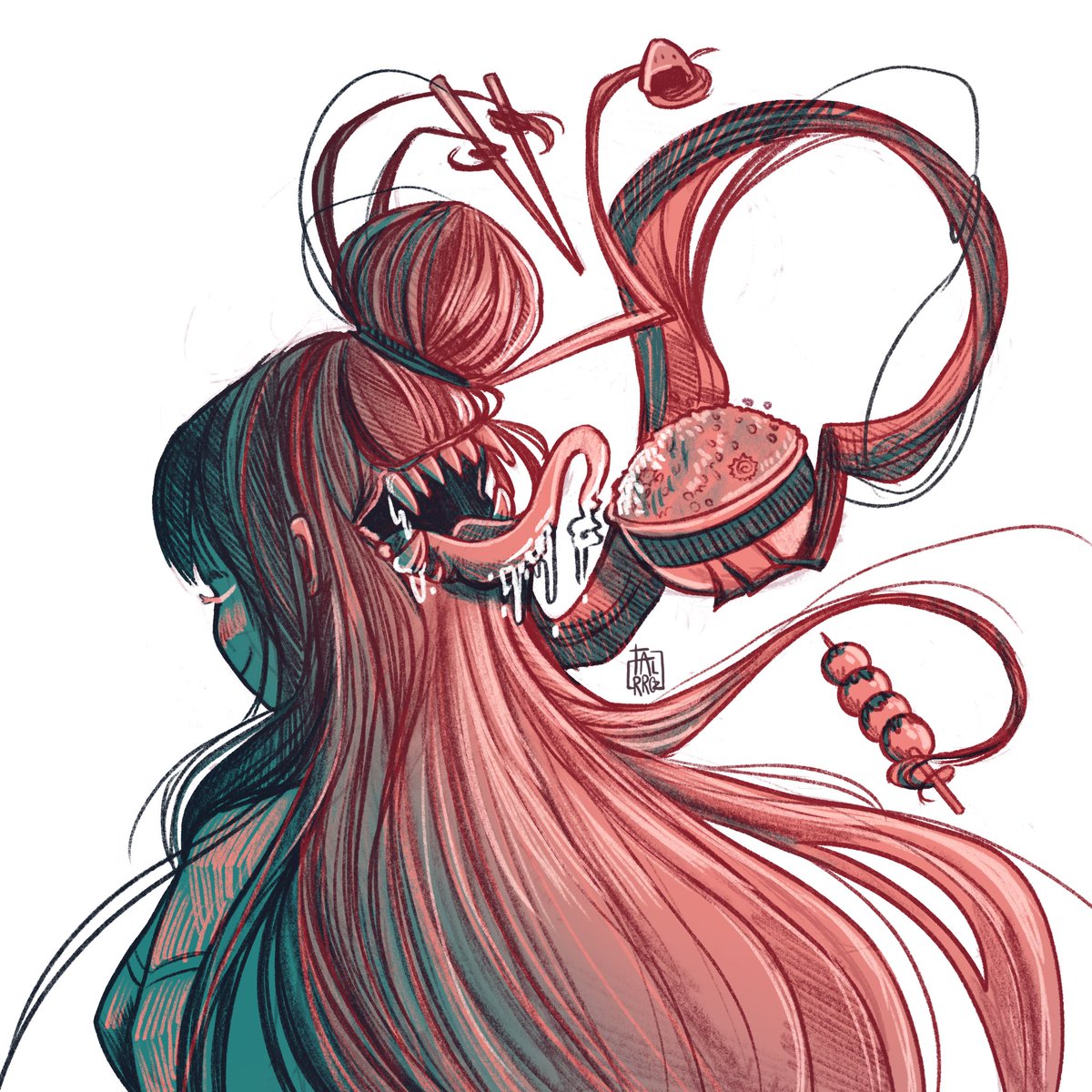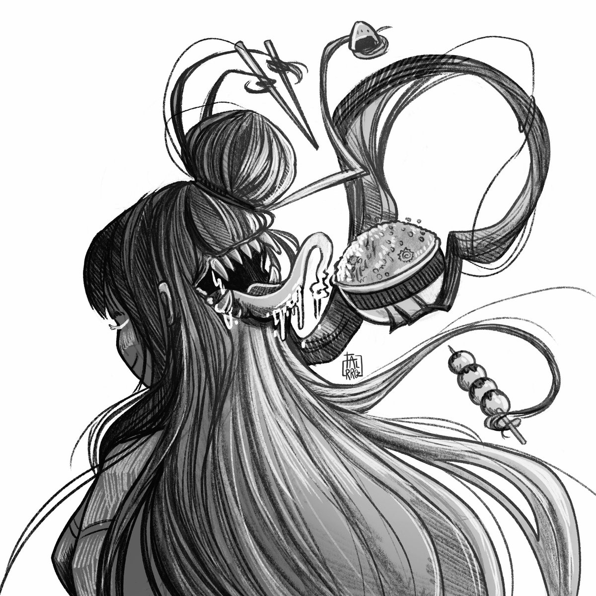 INKTOBER DAY4 •Futakuchi Onna• Have you heard of this two mouth women with black long hair who can’t stop eating ? This #yokai always has amazed me a lot! #inktober #inktober2019 #inktoberday4 #inktober2019day4 #yokai #japan #japanese #japanesemithology #futakuchionna