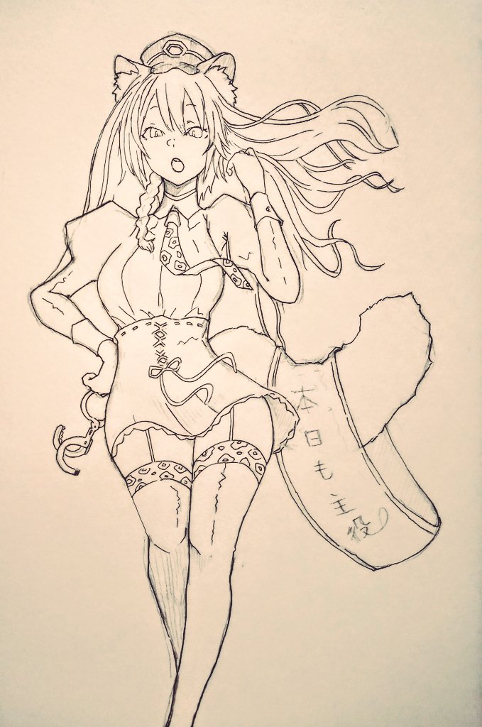 【ケモミミ宇宙警察ラクガキ】 一日警察署長とは思えない堂々とした立ち振る舞いの『雛森アンシア』さん ラクガキで終わる可能性を加味してタグ付けとこ🐖💦 #あんしあーと