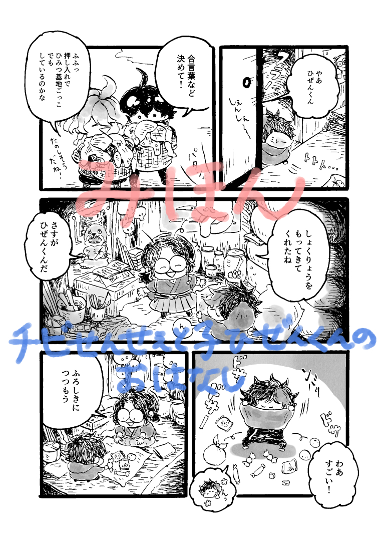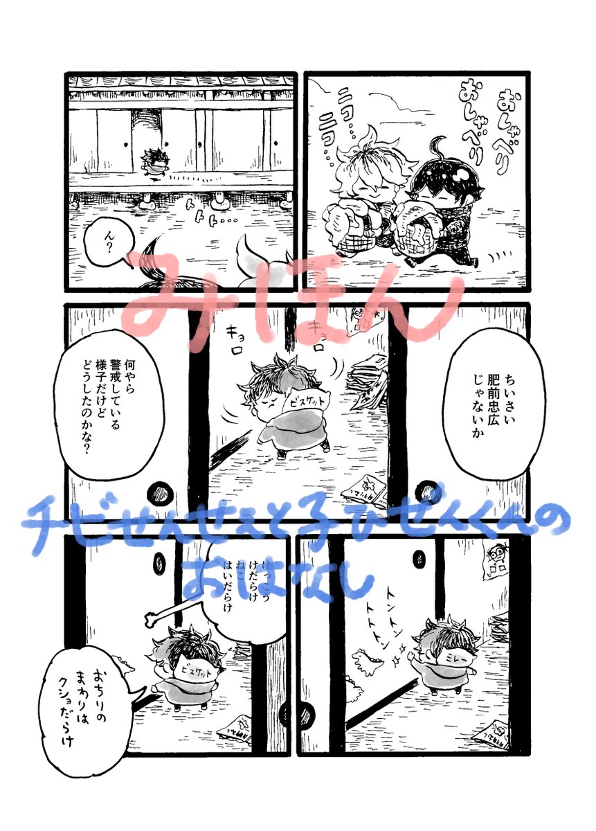 12/11新刊『おおきいちいさい つめあわせ』サンプル ・チビせんせぇと子ひぜんくんの大冒険 ・とある日の肥前くんと南海先生 ・南海先生と子ひぜんくんと喫茶店 ・深夜の肥前くんとチビせんせぇ それぞれのおはなしを詰めあわせた一冊です どうぞよろしくお願いします! pixiv.net/artworks/10323…