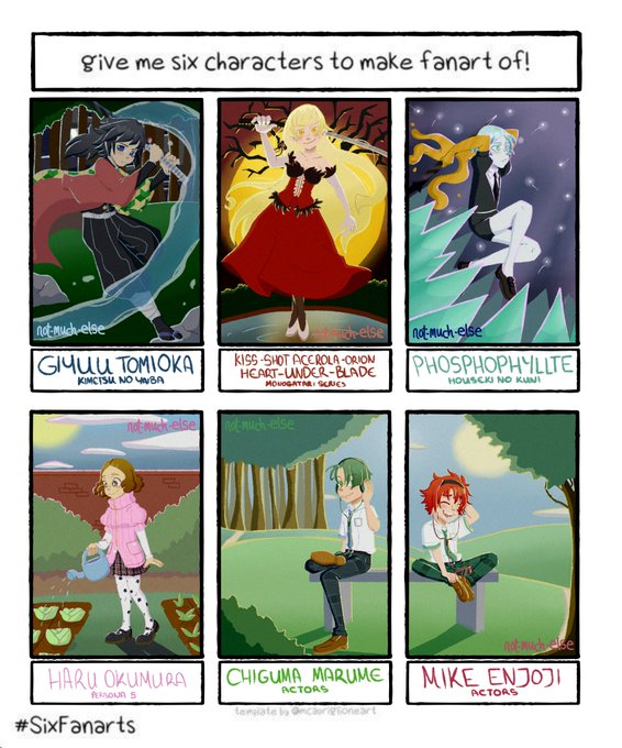 I completed tge #SixFanarts challenge!! Huuuge thank you to those who requested characters! I had so much fun making these >v< Who's your favourite?