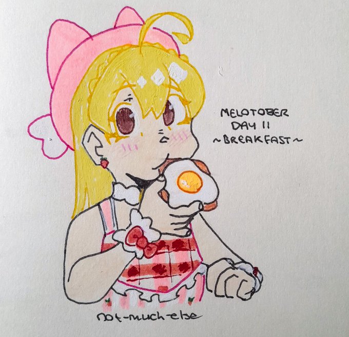 I am back from my mini - flu-induced - break with #melotober2022 I will try my best to catch up so here is day 11, breakfast amd day 12, sprout #oc #inktober2022