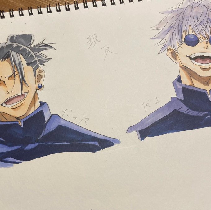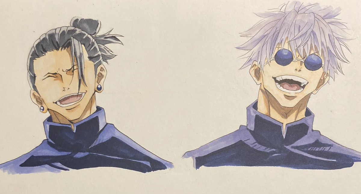本当はさしす組でのイラストでお祝いしたかったんやけども結局誕生日間に合いそうにないから、少し前に書いた最強の2人で祝わせてもらおう、、 ずっと笑顔でいられますように #夏油傑 #五条悟 #夏油傑生誕祭2022 #呪術廻戦ファンアート