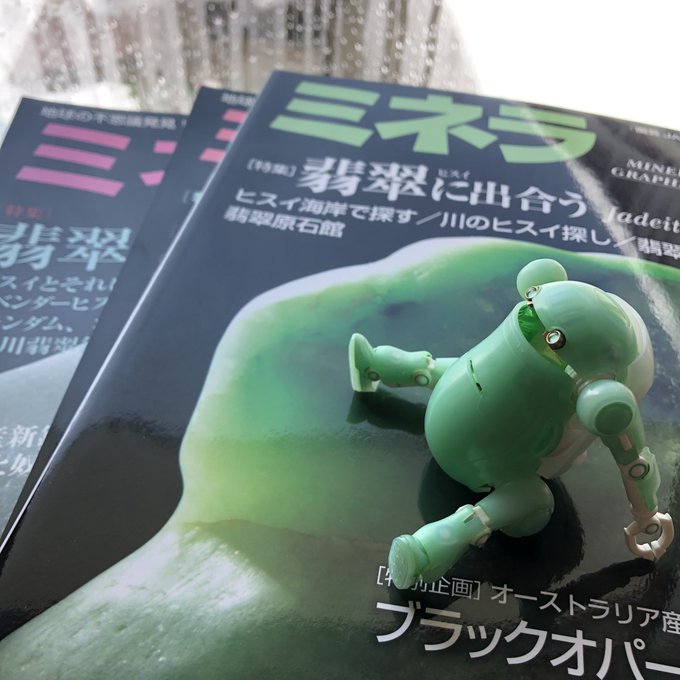 12 40 糸魚川のヒスイ君できたー! しーするーなパーツの裏面にポスカのきみどりを塗ったくりました! トップコートを裏面にだけ吹くのは初めての経験😆 #メカトロウィーゴ 21/02/20 10:59