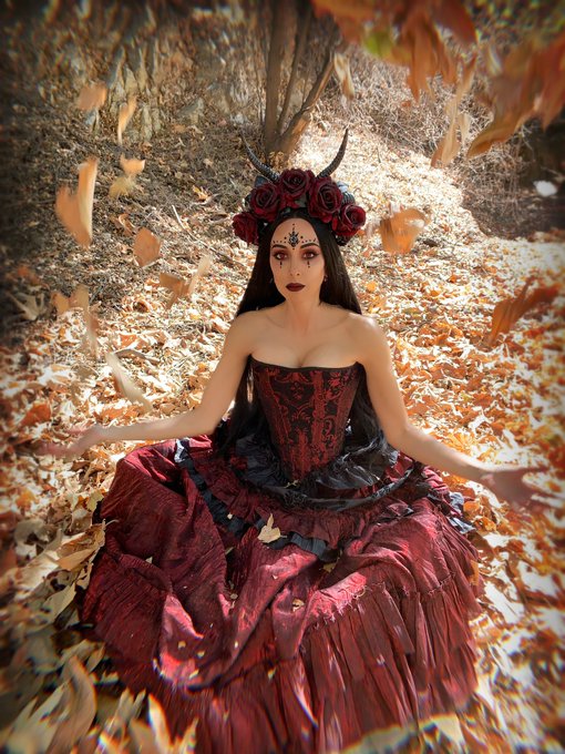 Halloween photoshoot! Now to turn this into a #dnd character. 📷: @yerawizardkelly , edits/MU/staff/headpiece by me. #Halloween #cosplay #dungeonsanddragons #vamily #labynight #geekgirl #cosplaygirl #autumnleaves