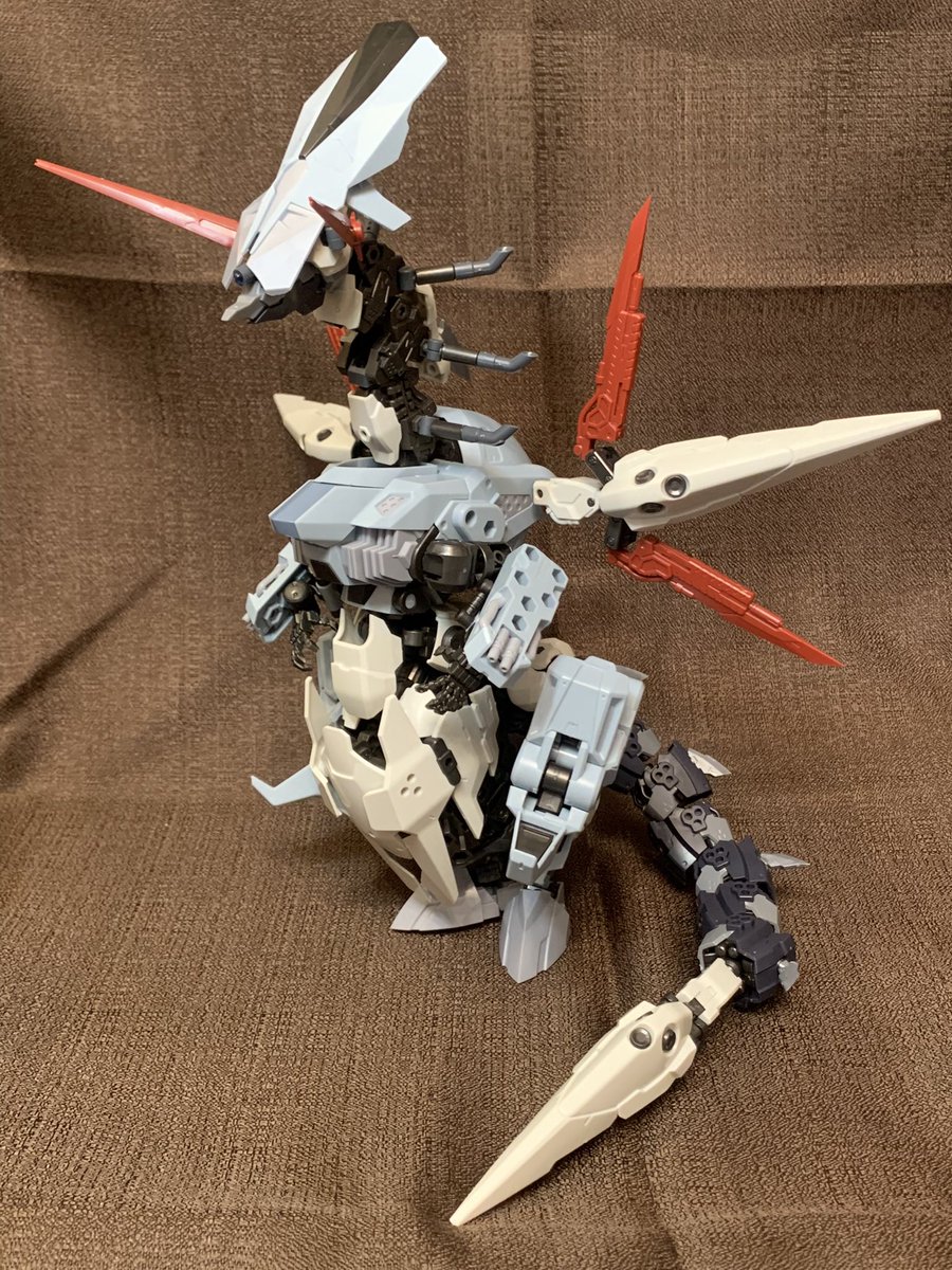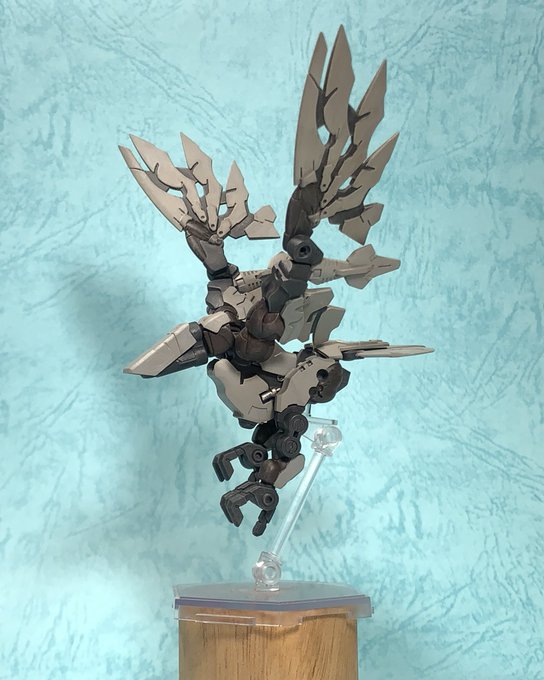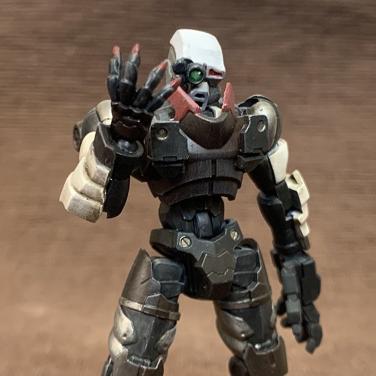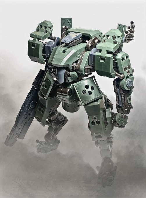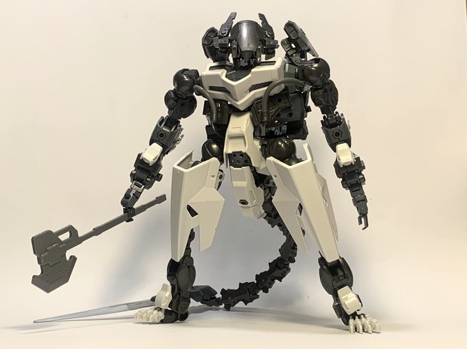 #今年作ったプラモ晒そうぜ #ヘキサギア #これが俺のブイトール ●ブイトール組替え VR-THOR 後になって脚部ブレードを「回し蹴りの時に刃が向く側」にした思い出笑 ボルトレックスの後継機なのにボルトレックス感がなかったので、古参兵が自機を組み込んだってイメージで作成